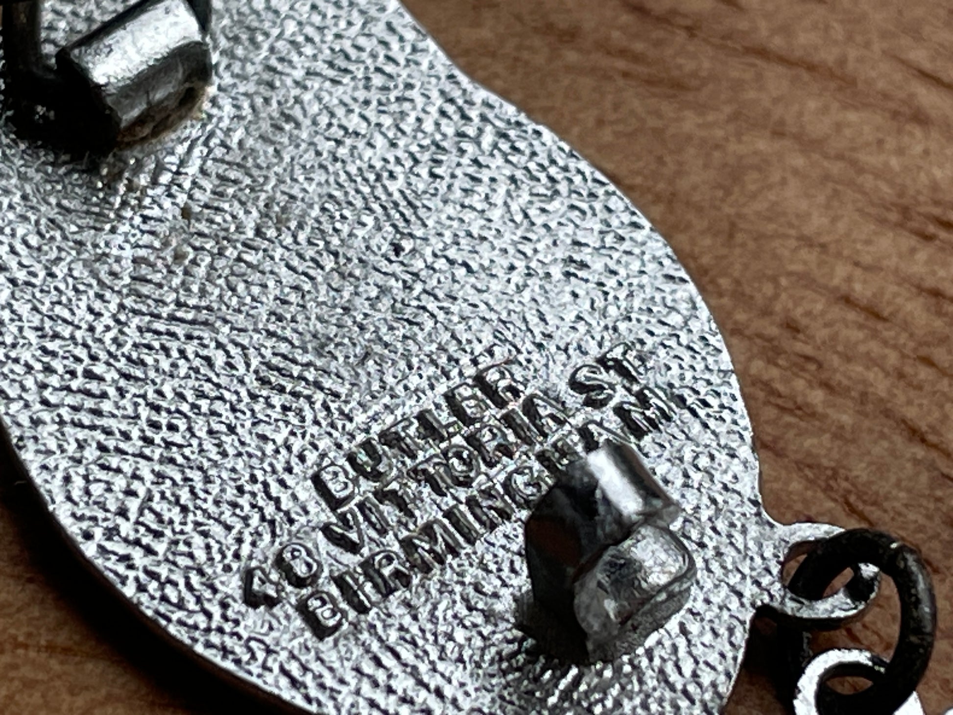 A rare original circa 1970's 'British Automobile Racing Club BARC Officials pin badge'; chromium plated example, the centre depicting the club's logo; a pale blue enamel shield with stylized lion over a chequered flag with 'BARC' initials and additional dark blue enamel 'Official' scroll; the reverse with maker's details "Butler 48 Vittoria St Birmingham".