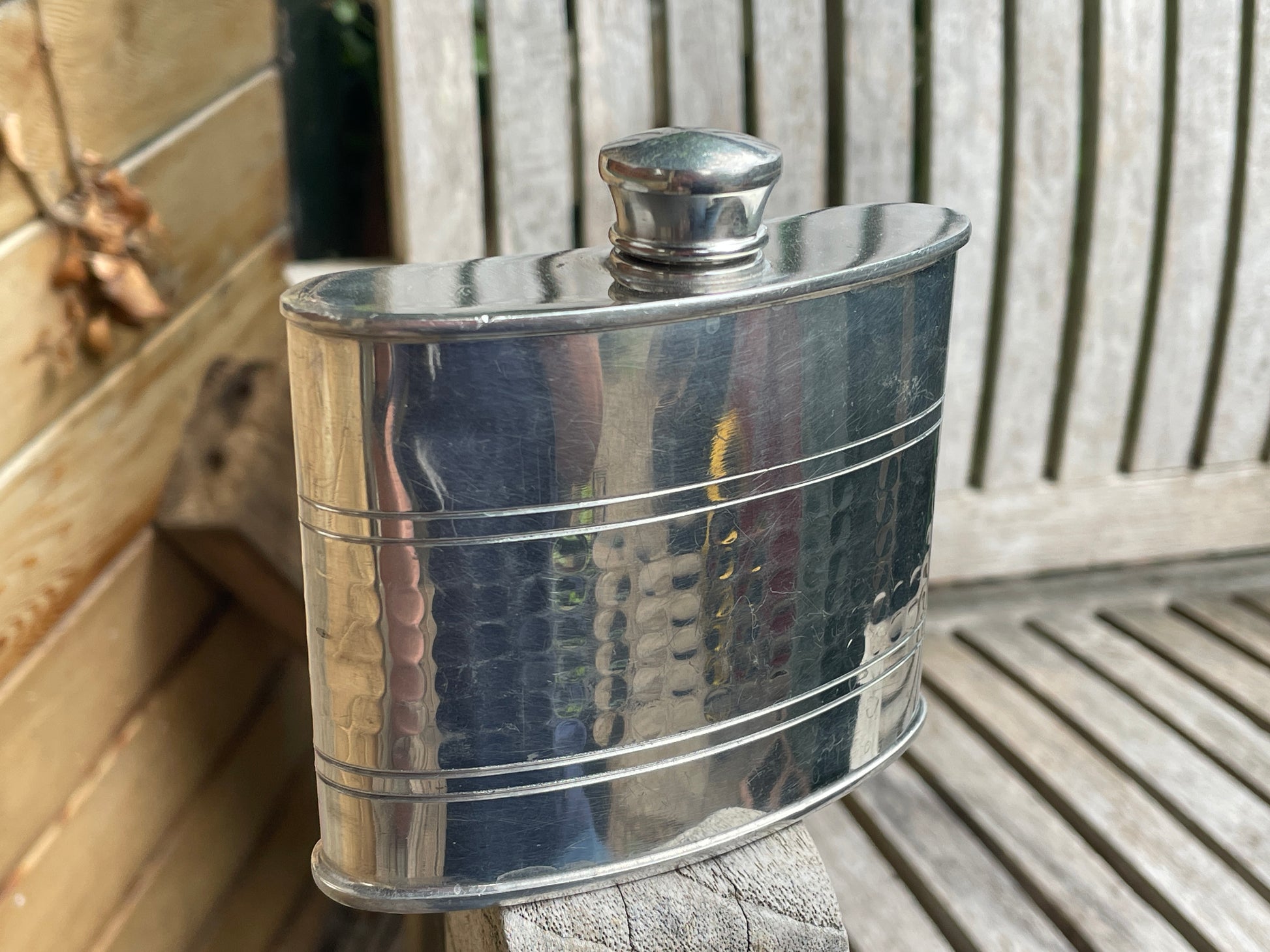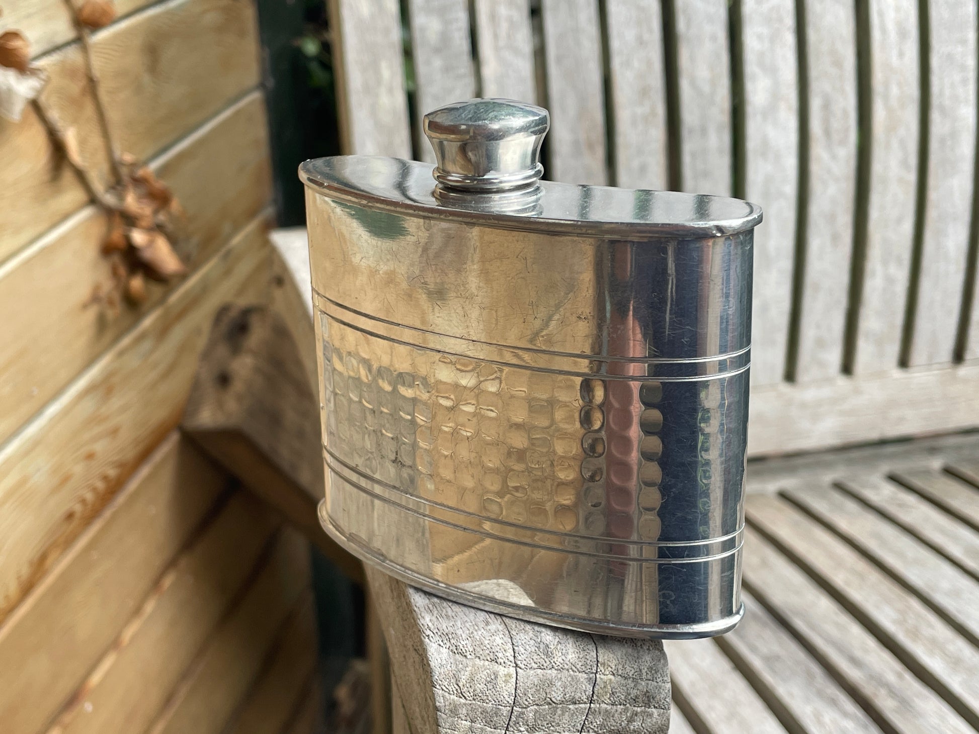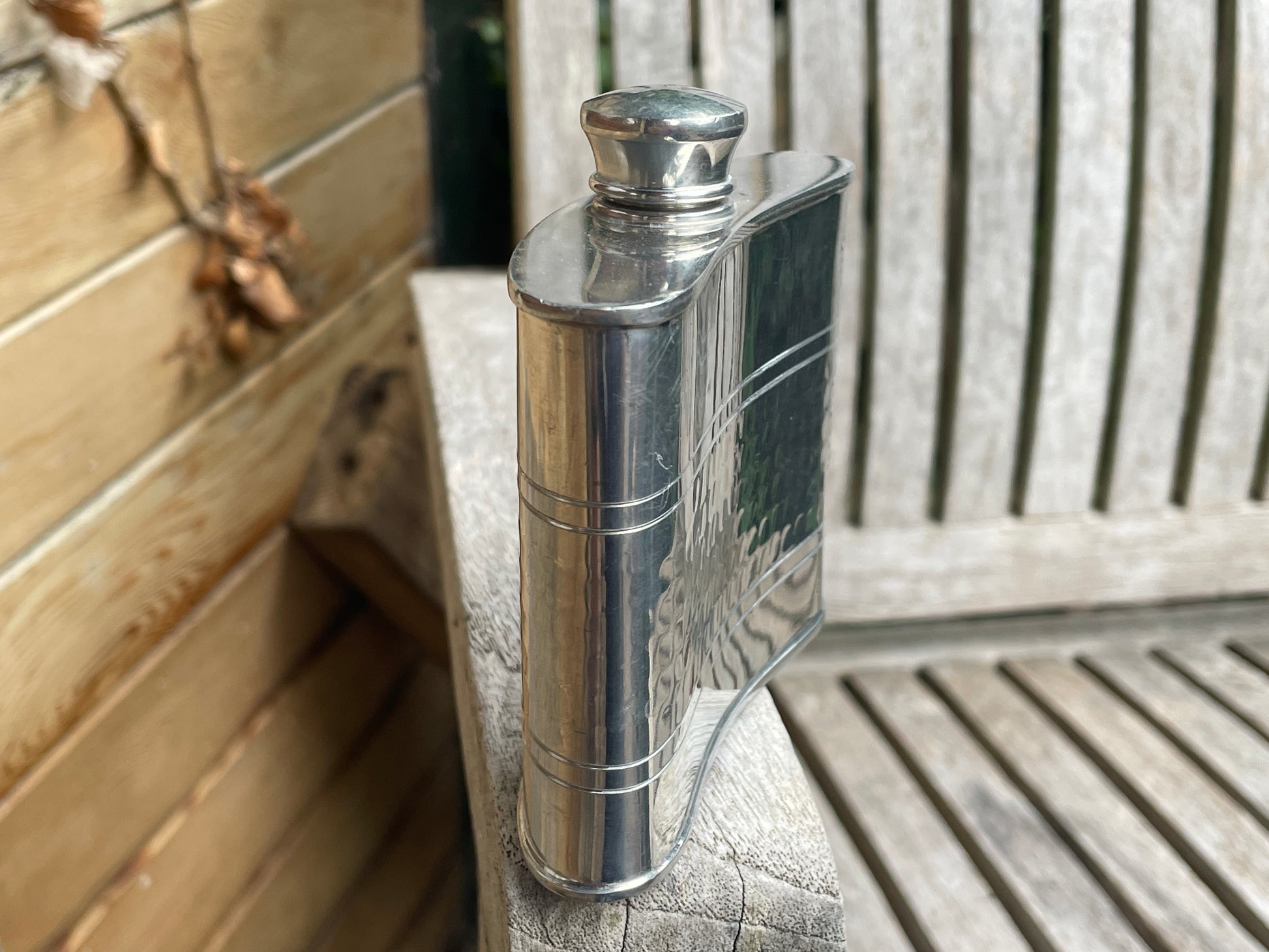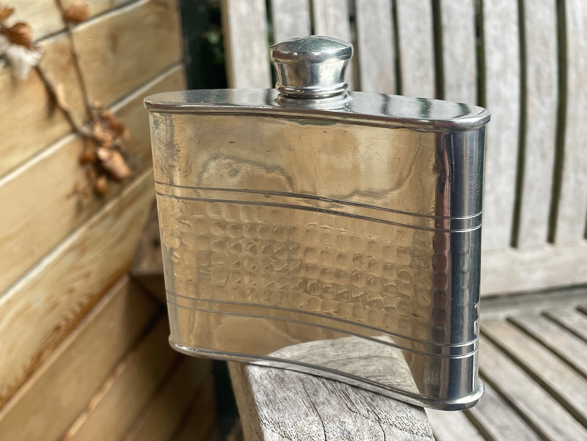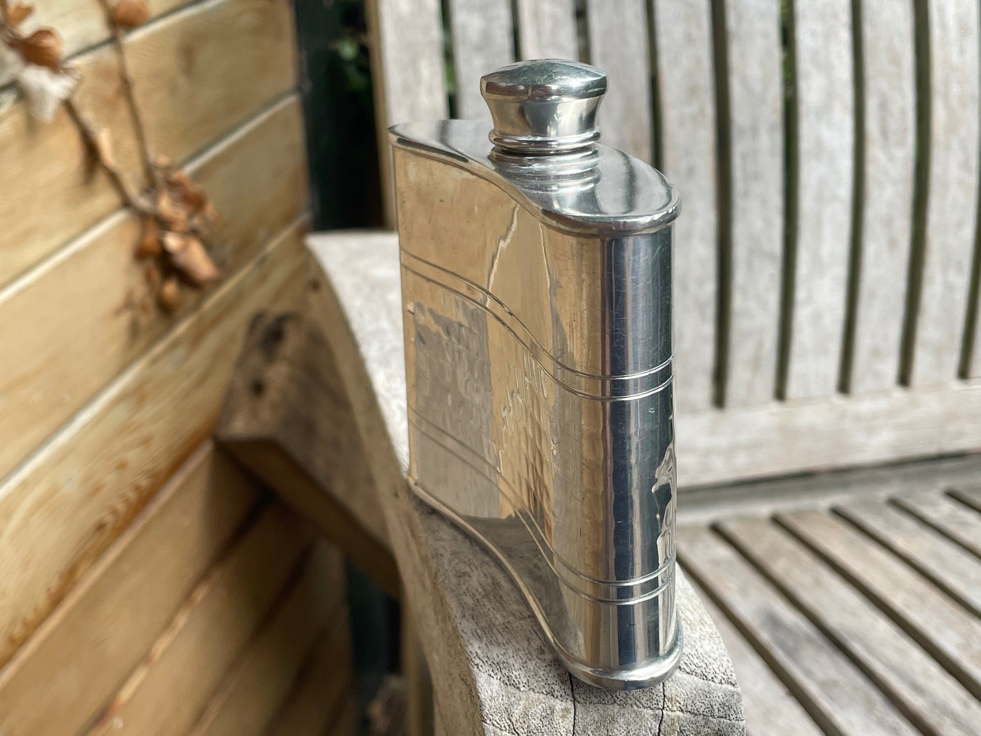 Vintage Selwin Pewter Hip Flask – English Pewter – Curved Pocket Flask – 9.5cm Tall – Made in England