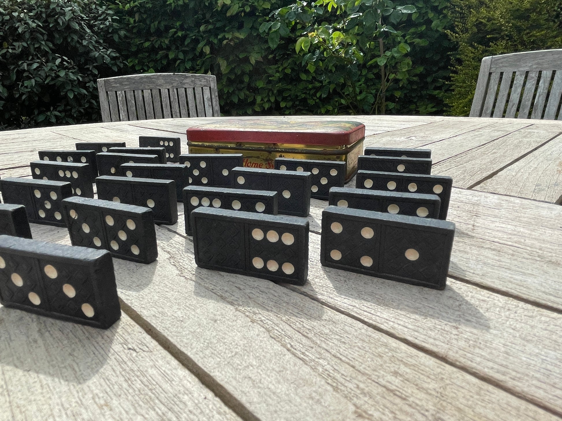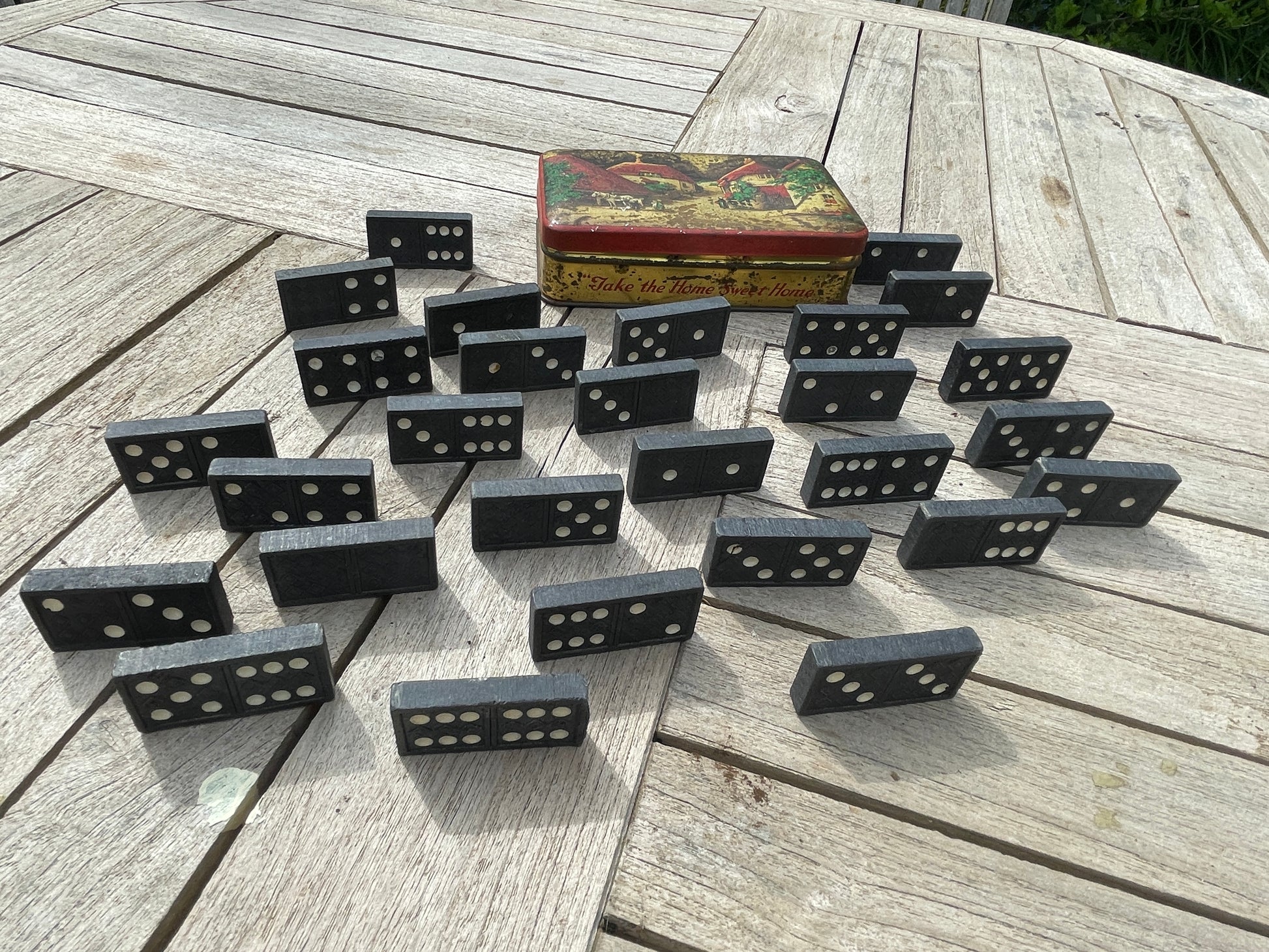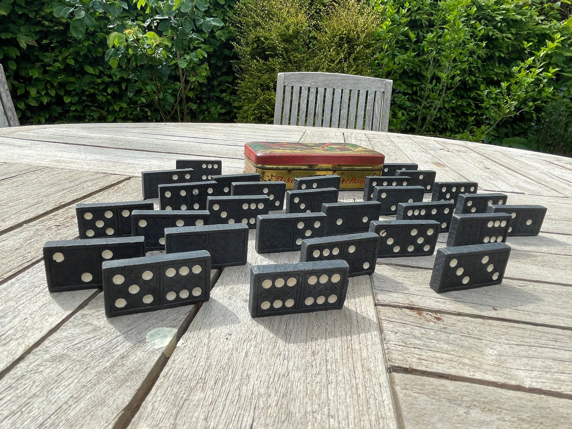 Condition: One domino has been broken and repaired see the image but full set in the tin