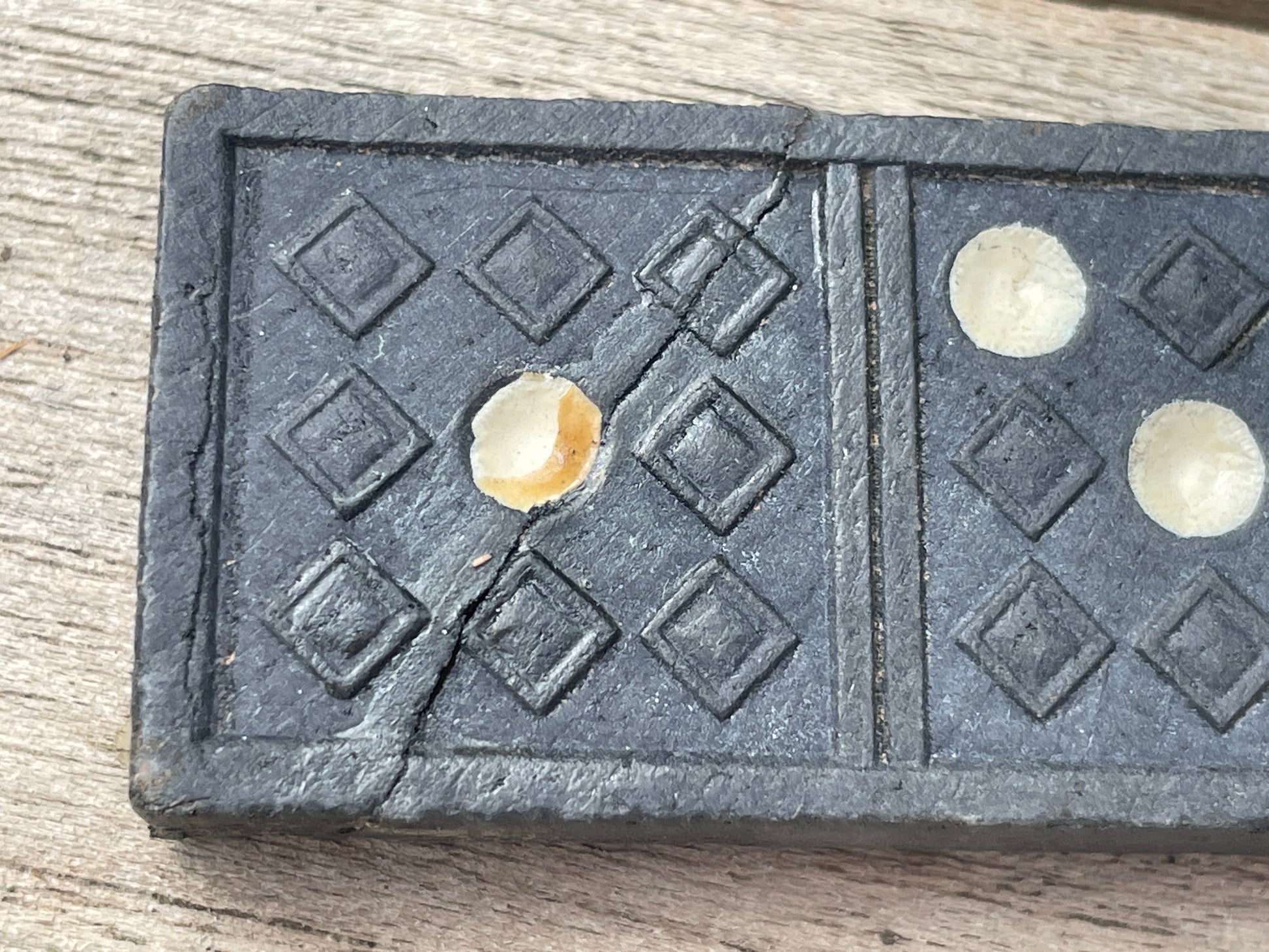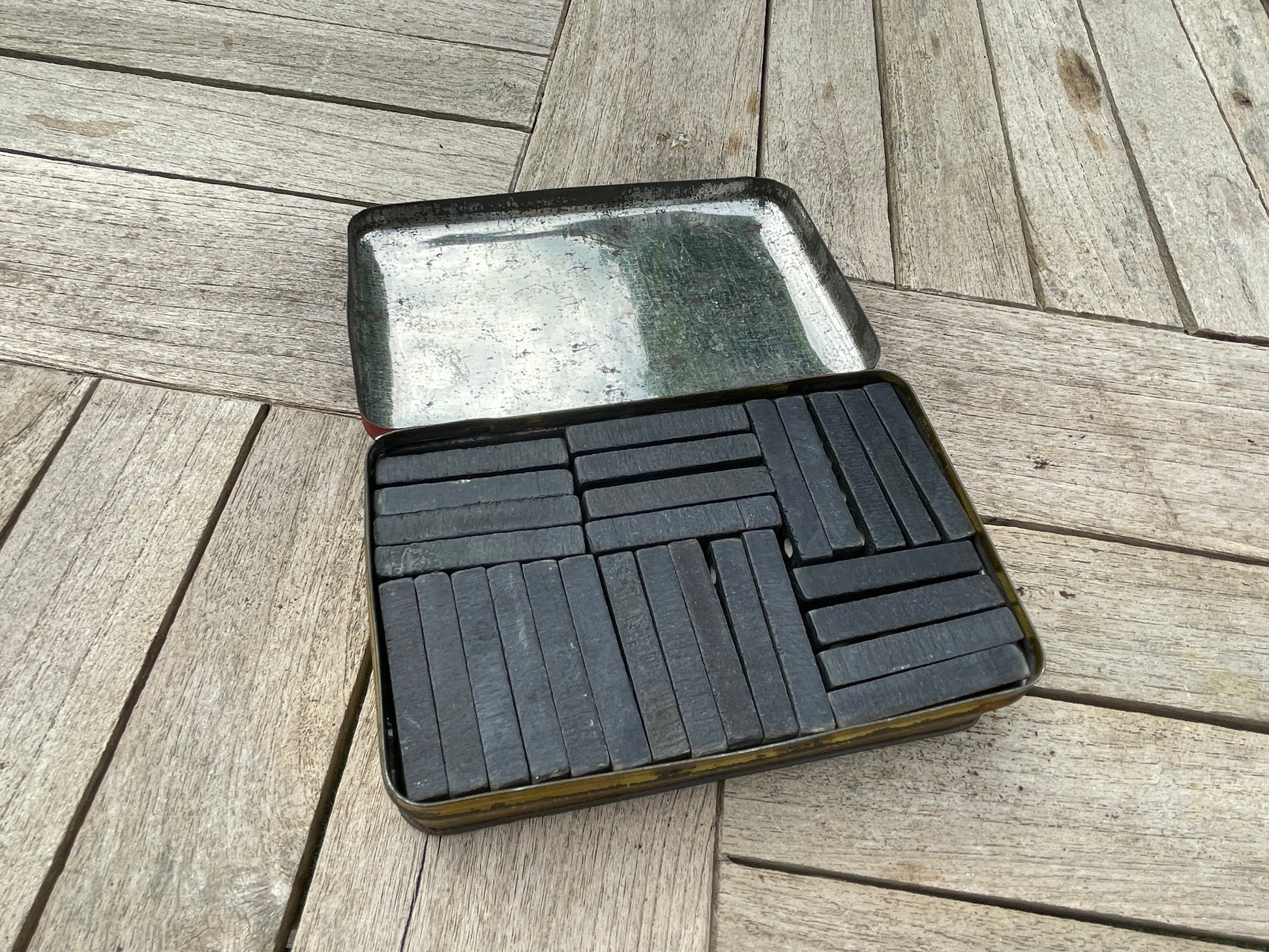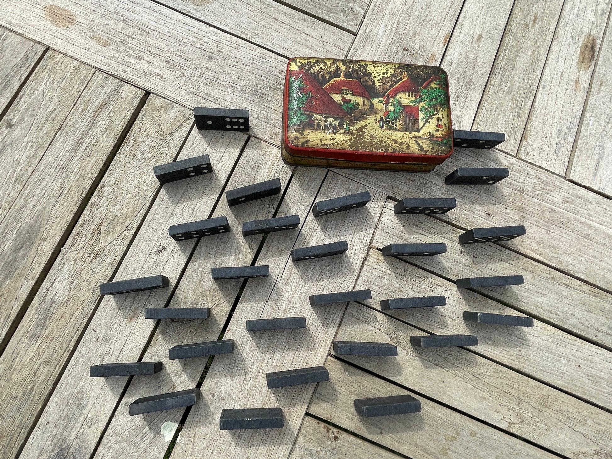 Condition: One domino has been broken and repaired see the image but full set in the tin