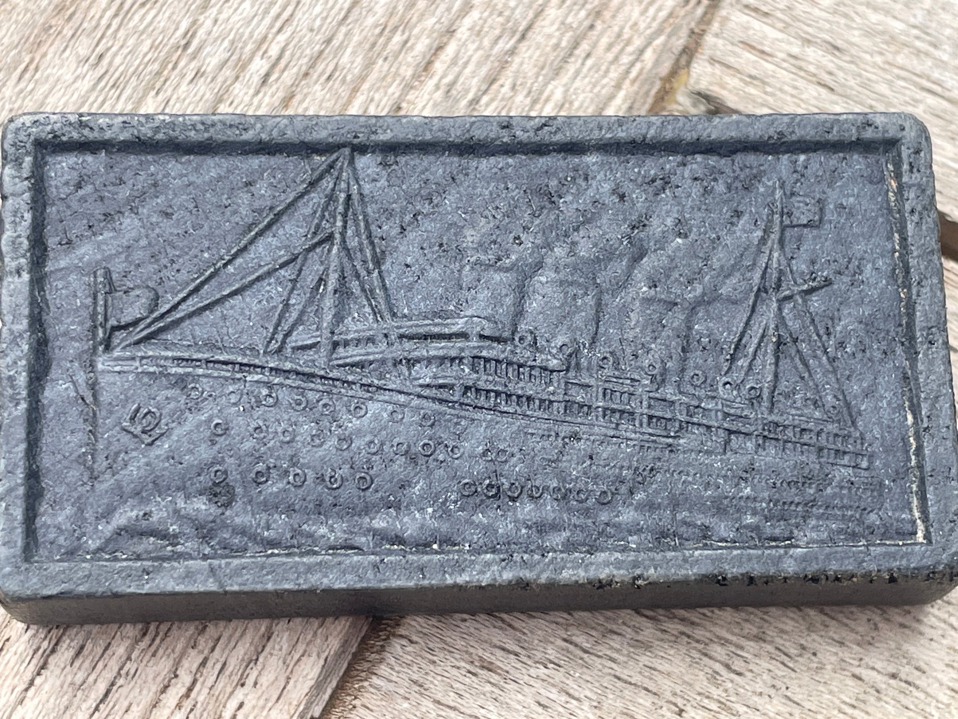 This vintage domino set from Spears Games features a beautiful and unique design with ships on the rear of each domino. Perfect for collectors of retro games or those who appreciate distinctive game sets with historical flair.