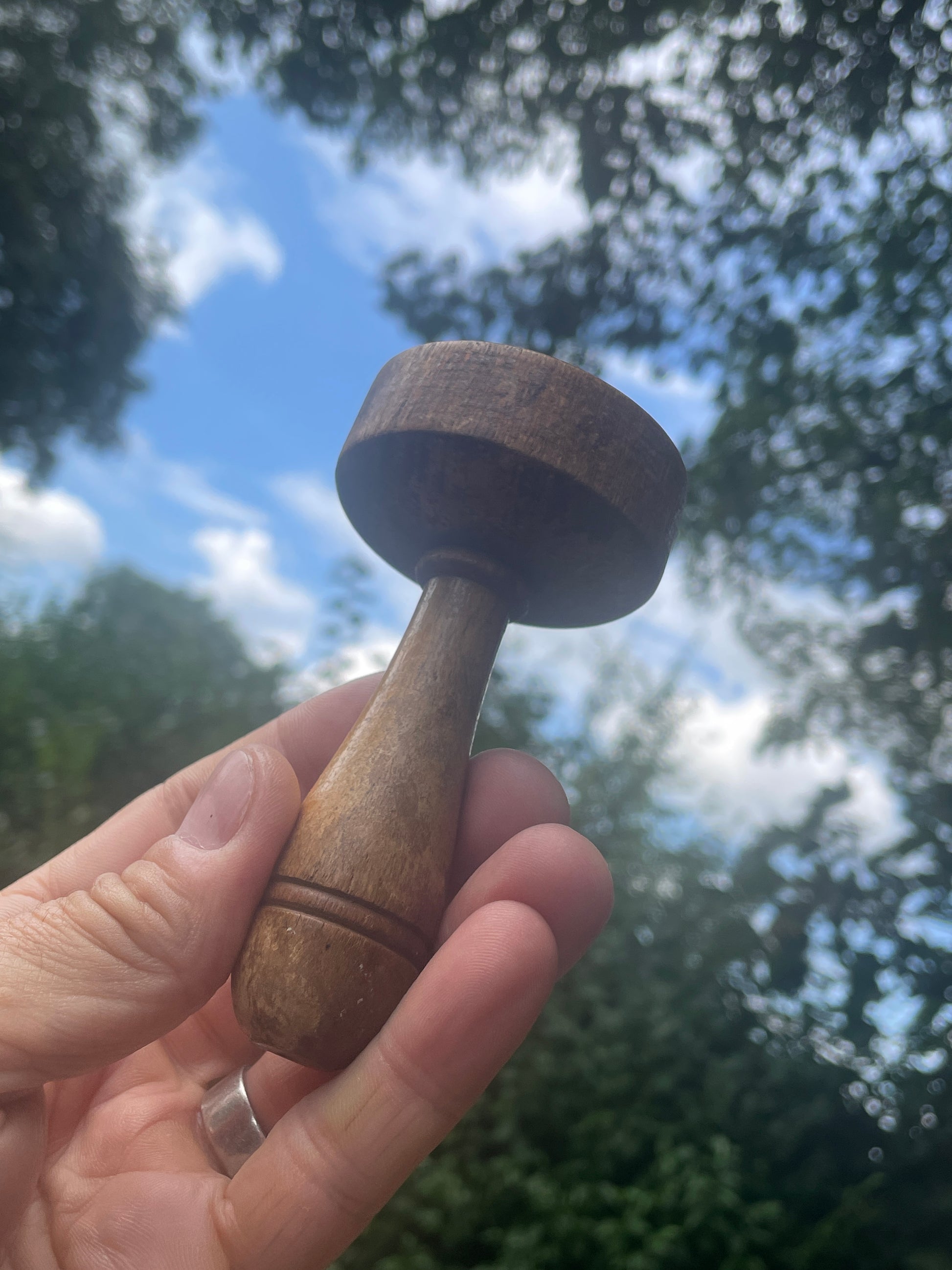 A lovely vintage wooden darning mushroom, dating to the early-to-mid 20th century. This traditional sewing tool was used for mending socks and knitwear — the domed top provided a firm surface for darning while protecting fingers from the needle.