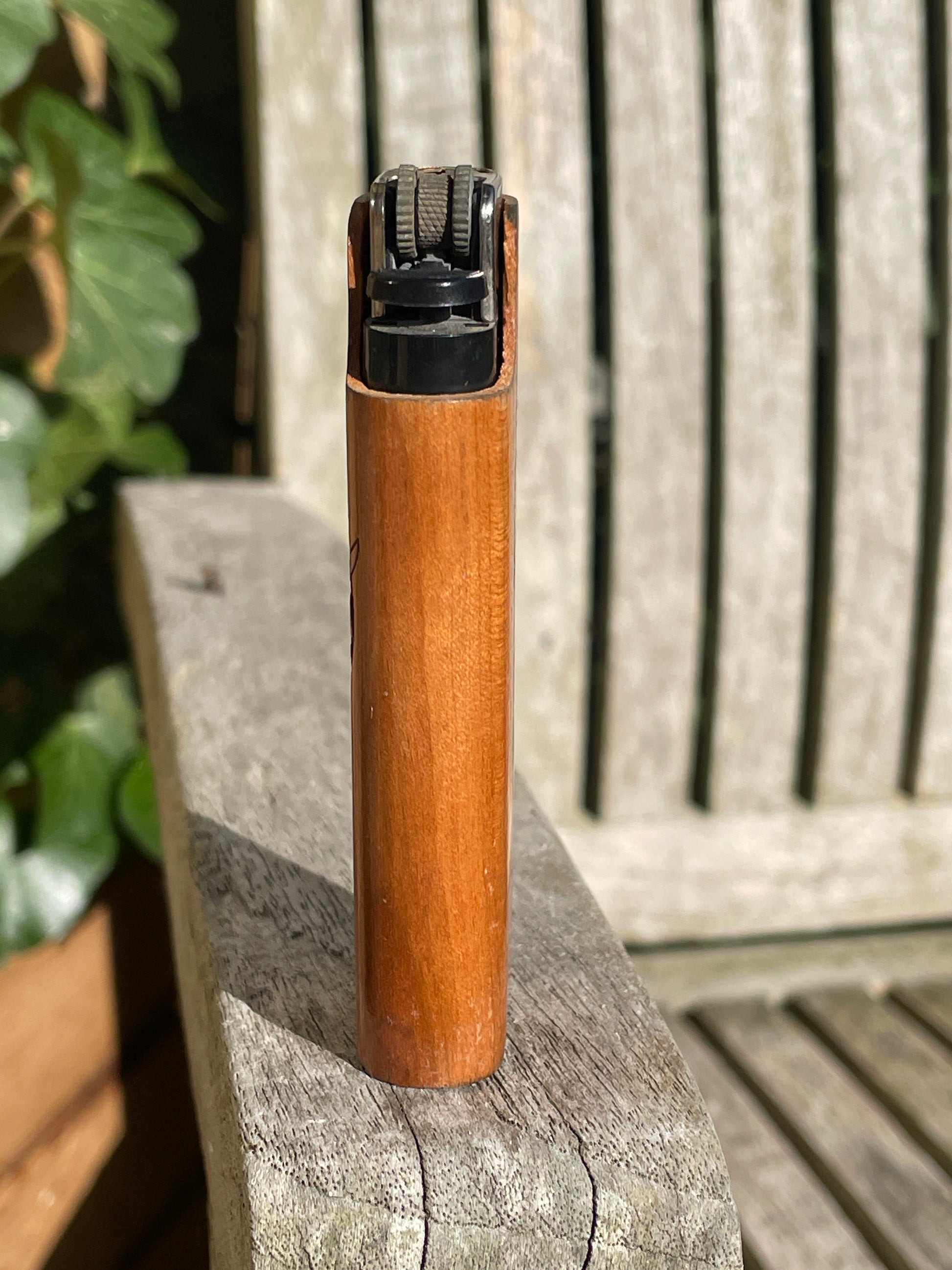 Vintage wooden Nasa Wayne Carver Woodland lighter case from USA