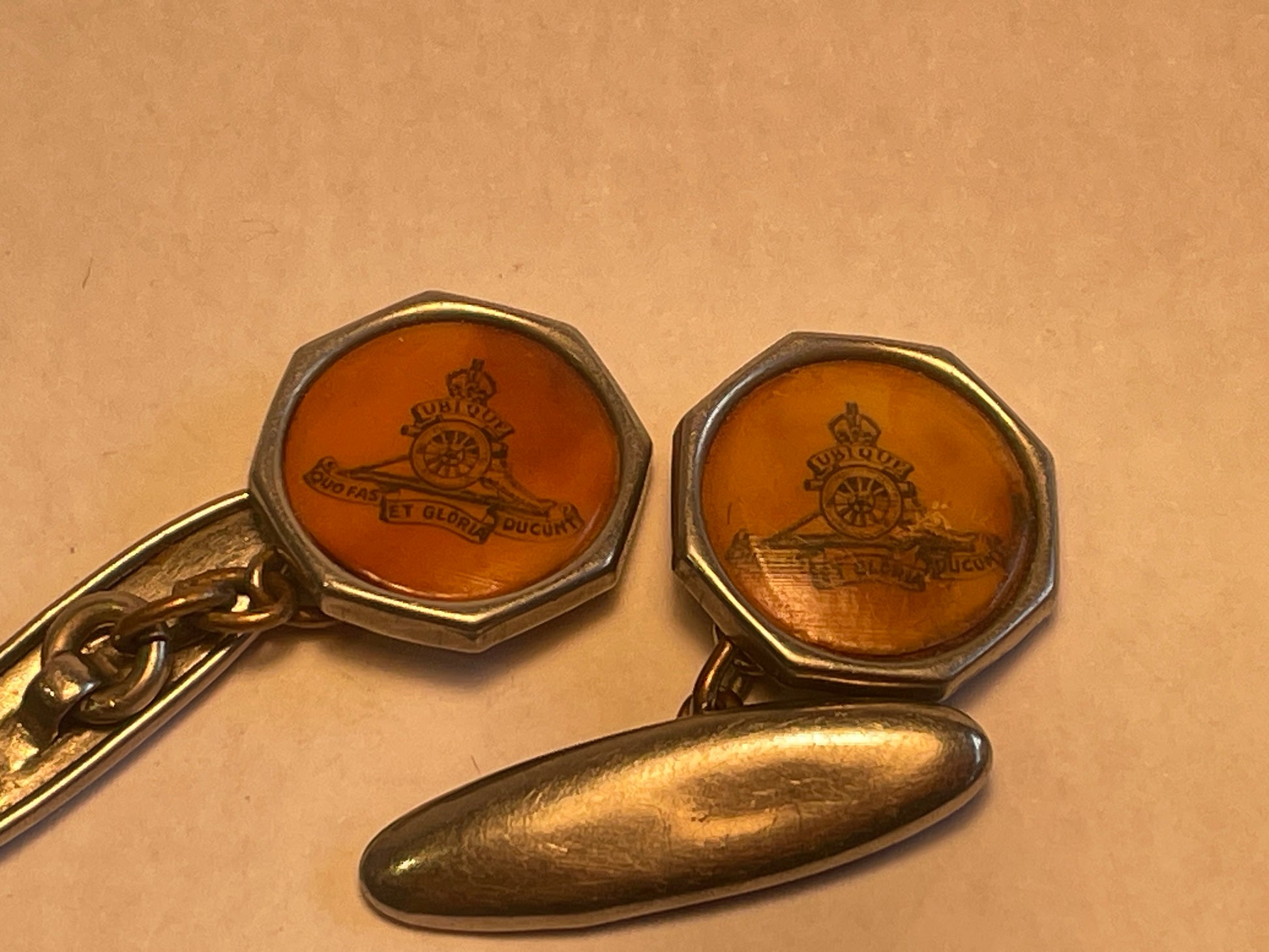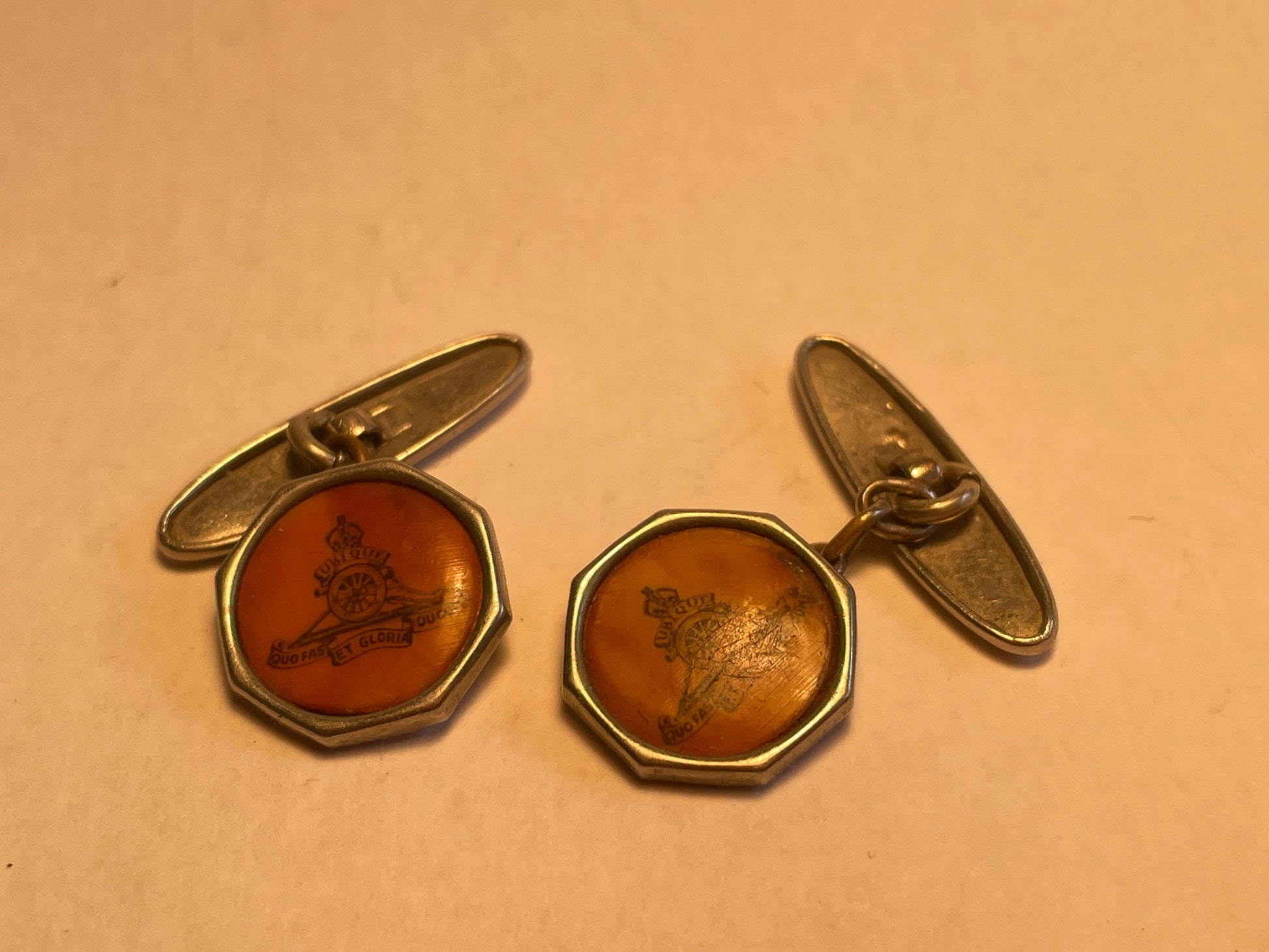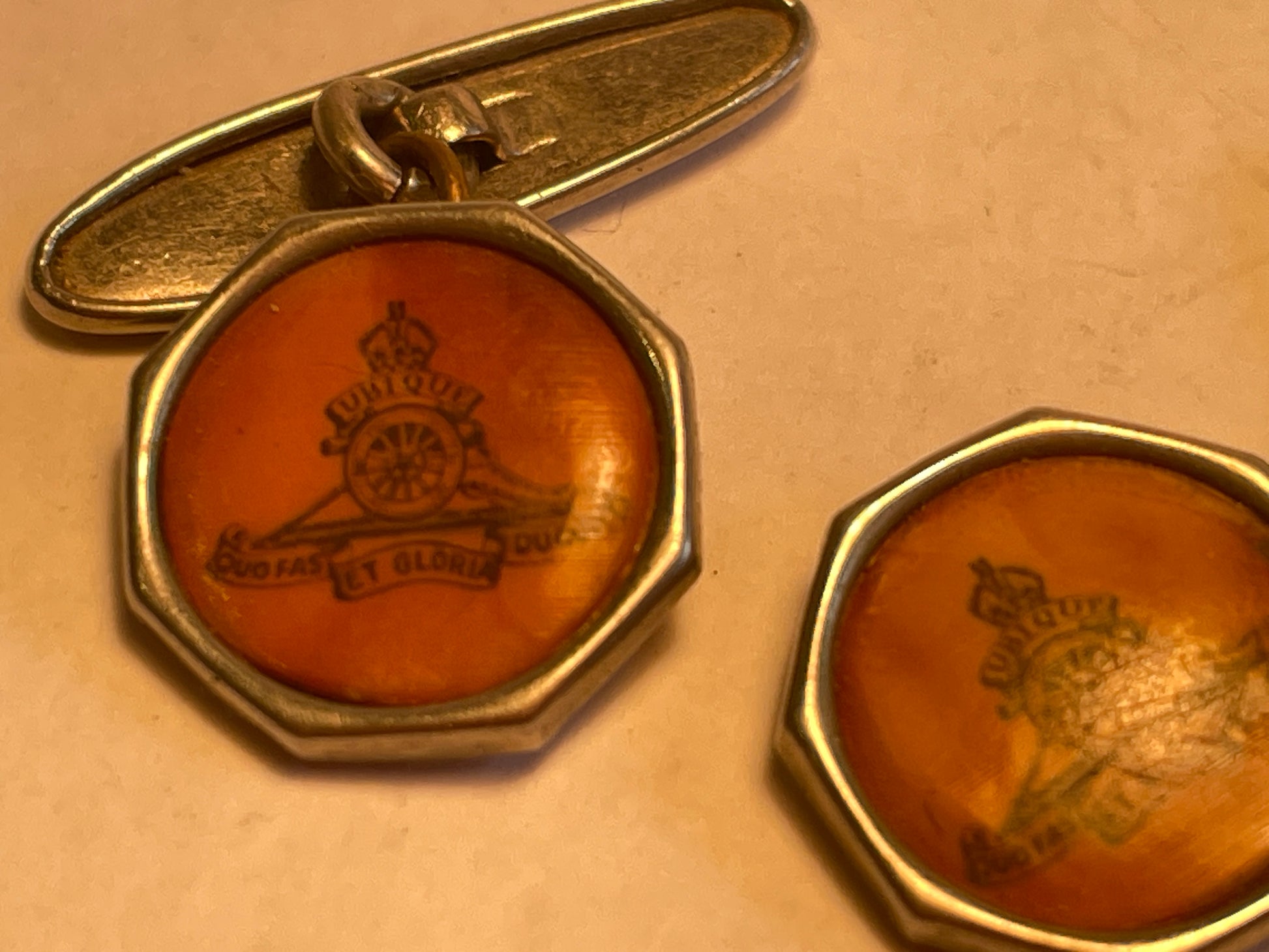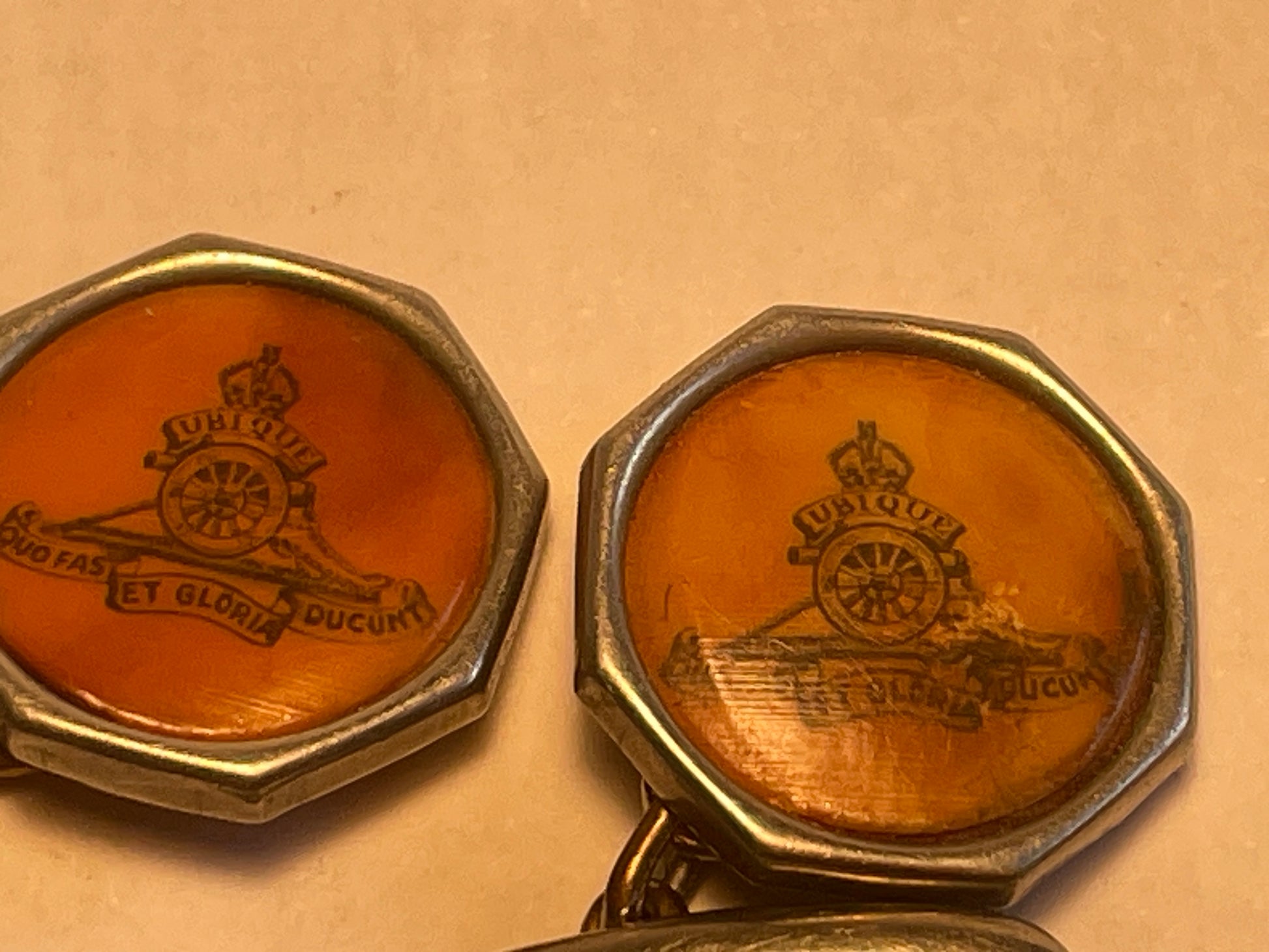 WW2 Army Regiment Royal Artillery Cufflinks marked 'Ubique Quo Fas Et Gloria Ducunt '
